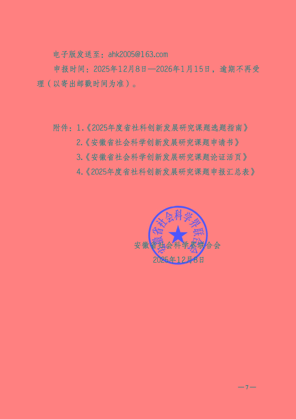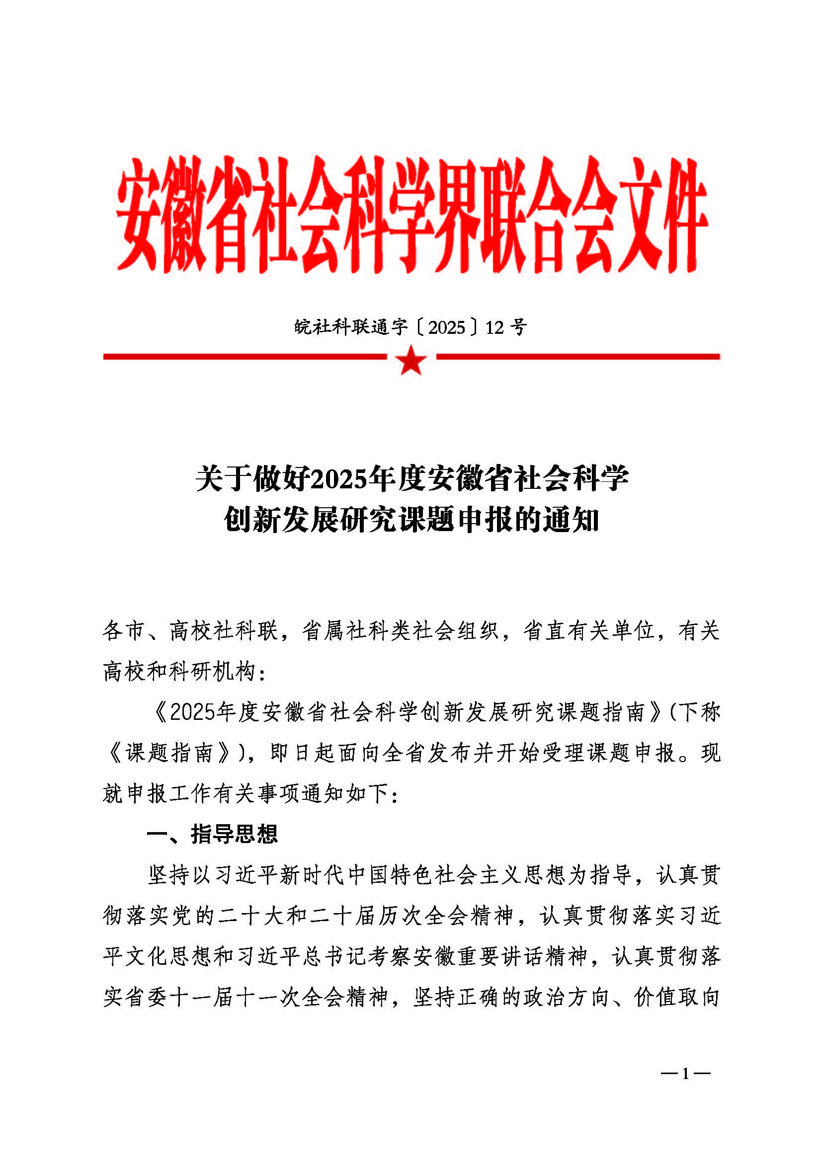 关于做好2025年安徽省社会科学创新发展研究课题申报的通知